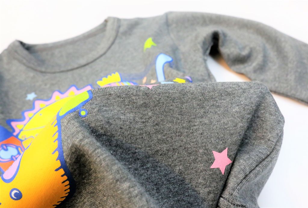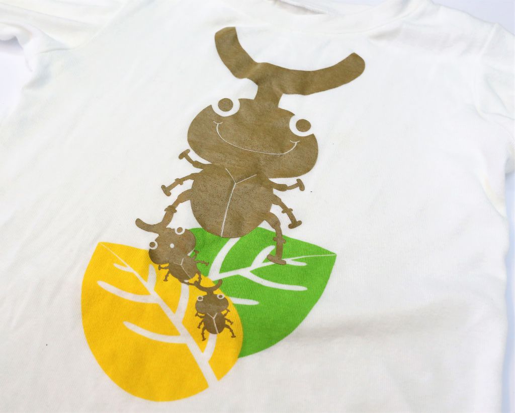 上衣胸口的鍬形蟲是會發光的喔,好有趣喔^^ 我也喜歡褲子滿版的設計,非常有童趣