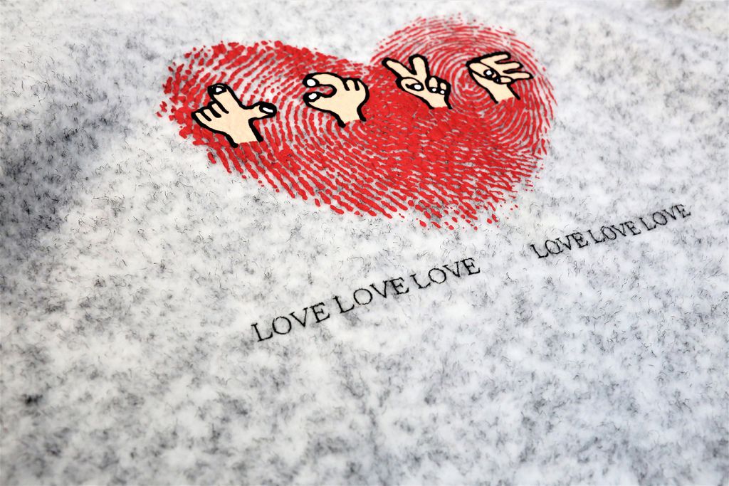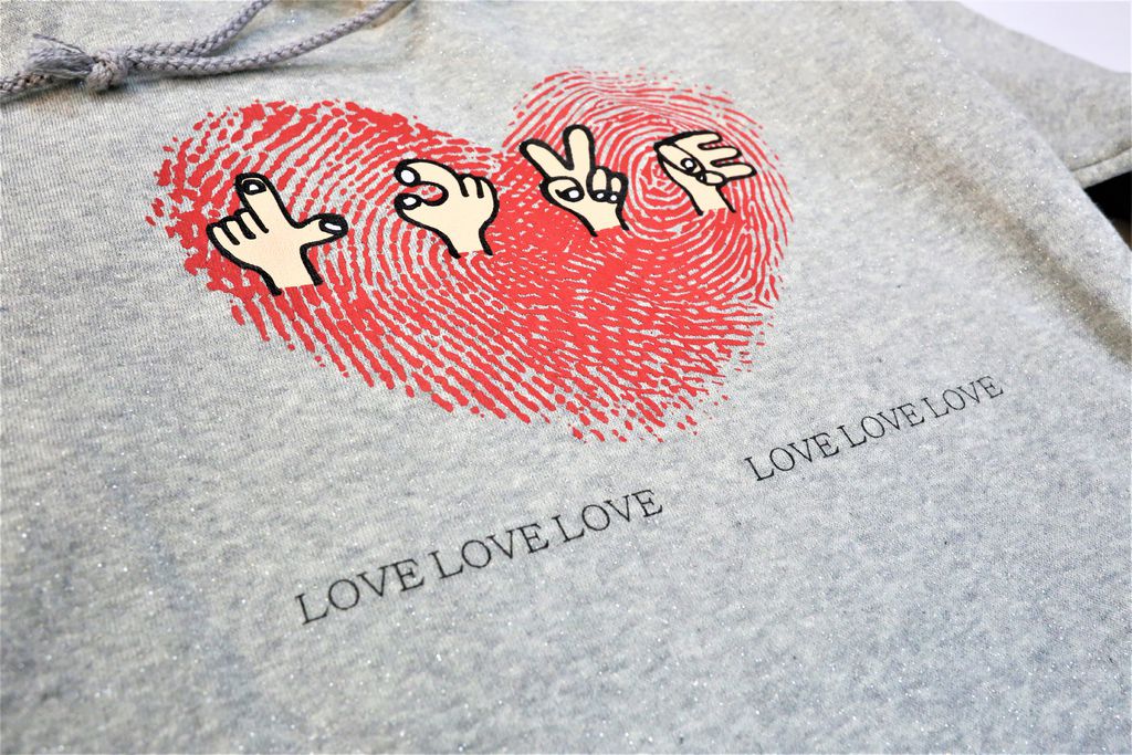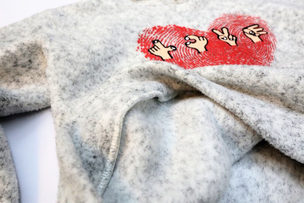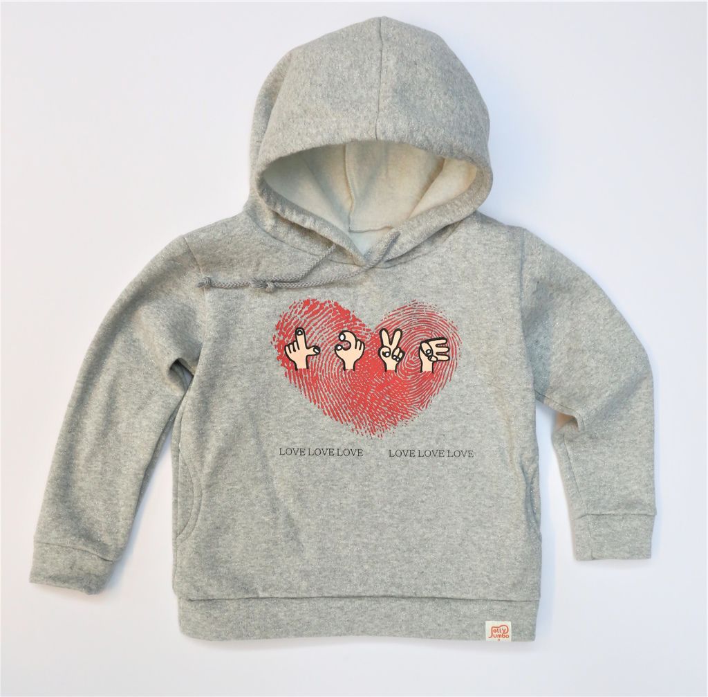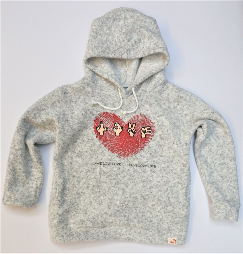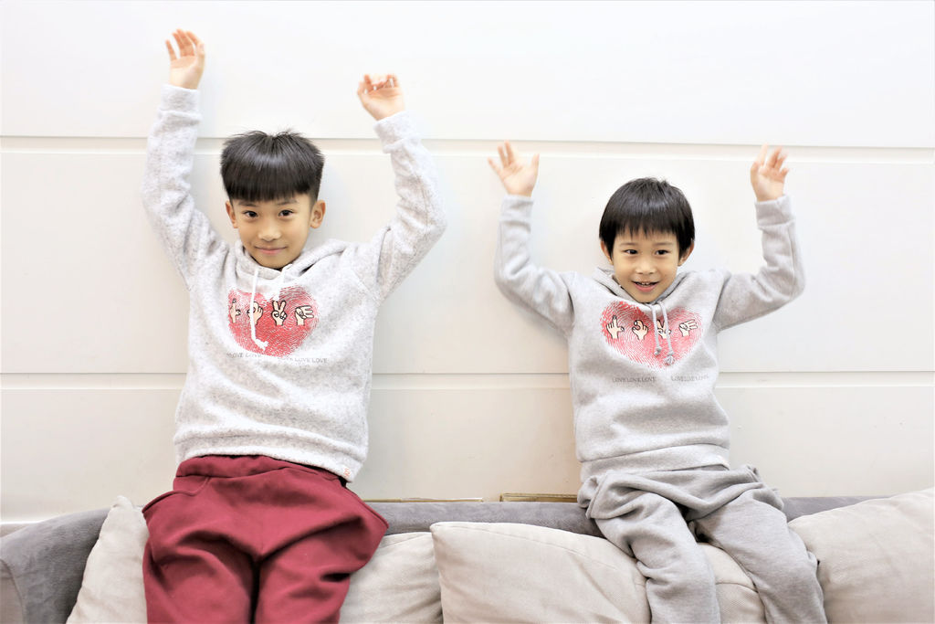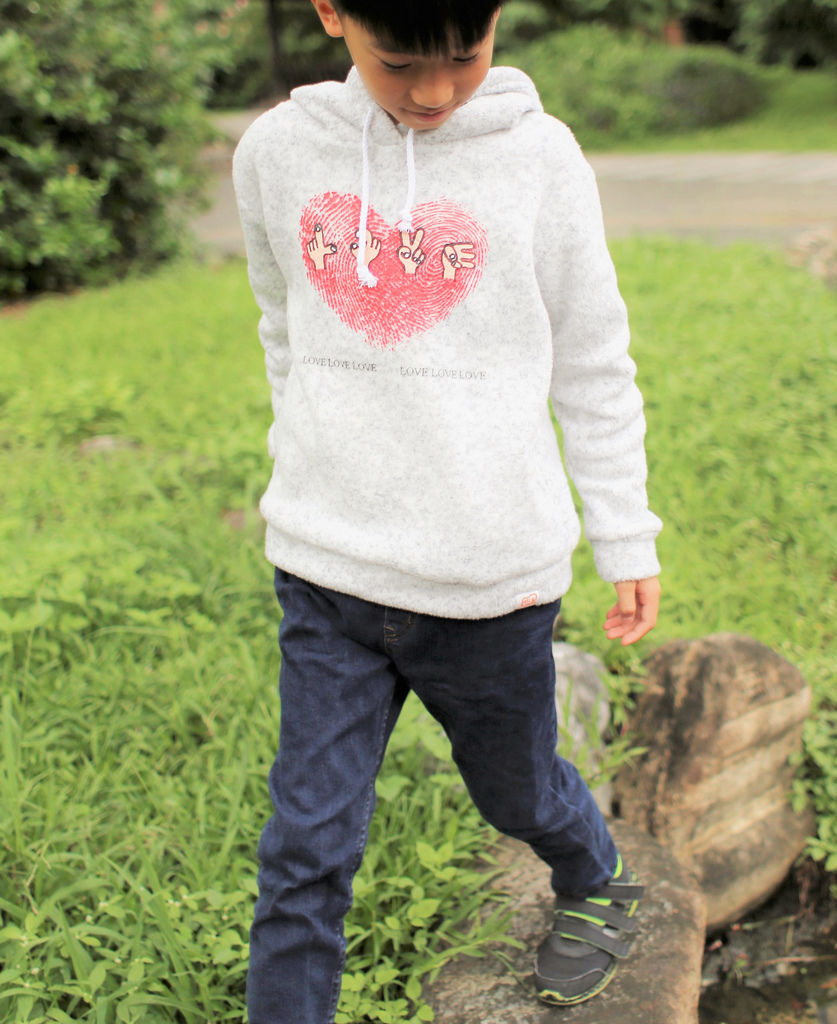 哥哥穿的是淺灰色的愛心帽T,超厚刷毛,好暖和