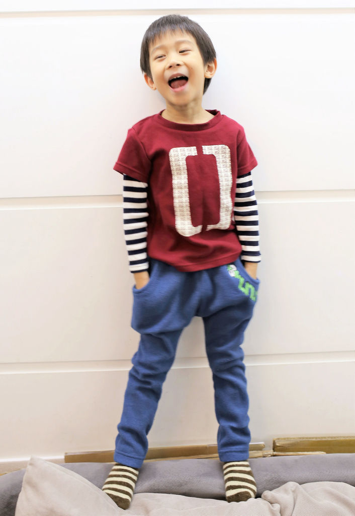 柔軟的哈倫褲瘦瘦的人穿起來有一種低調的休閒風、圓圓的孩子穿起來就有一種活潑的可愛風