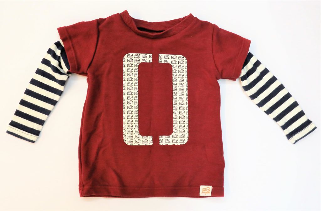 暗紅色+黑白相間的設計,展現孩子的活力感