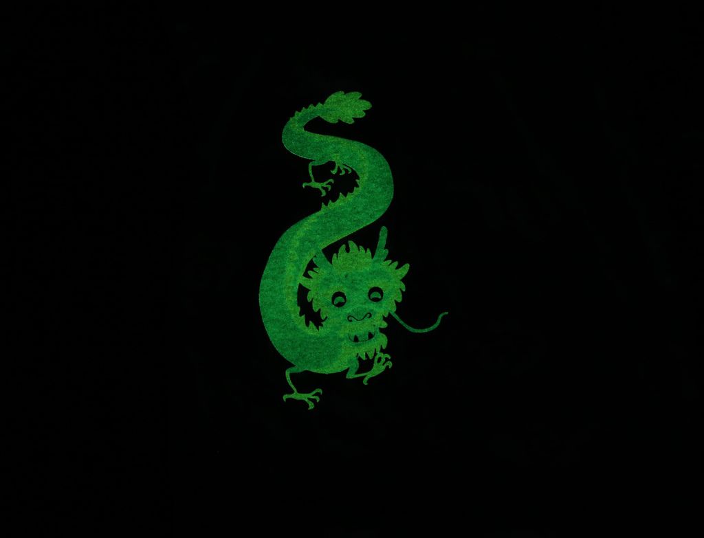 上衣胸口的飛龍,到了晚上也會發光喔,發光材質是非常安全的,設計師媽咪拍胸脯保證的喔^^
