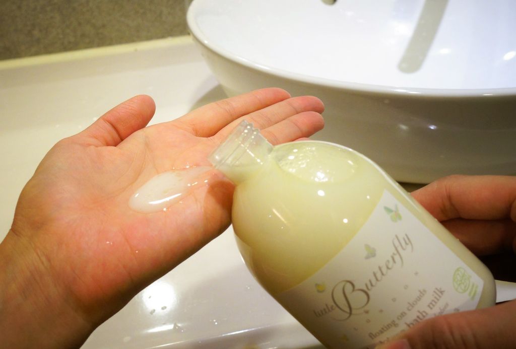 倒入手心可以感覺得出來那種柔滑滋潤的觸感,聞起來有一種清新淡雅的柑橘調香氣,是一種會讓寶寶獲得舒緩的味道