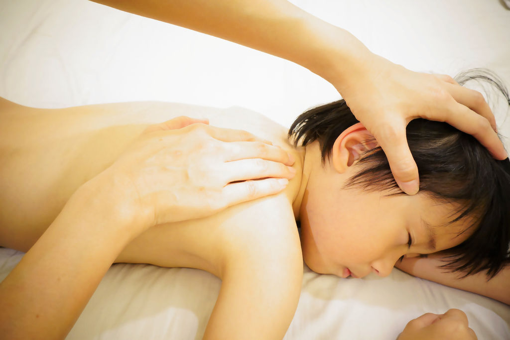 按摩的手法只要記得輕、柔、慢,就可以了,從頭到腳、從背部延伸到四肢,一點一點的輕輕按壓,孩子會感覺到非常放鬆