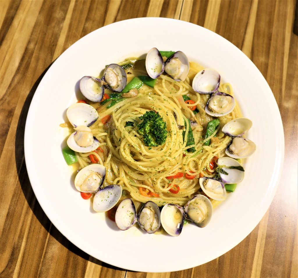 再來這道讓我超愛的蒜香白酒蛤蠣麵(微辣),真的~超~好~吃, 上菜速度也非常快