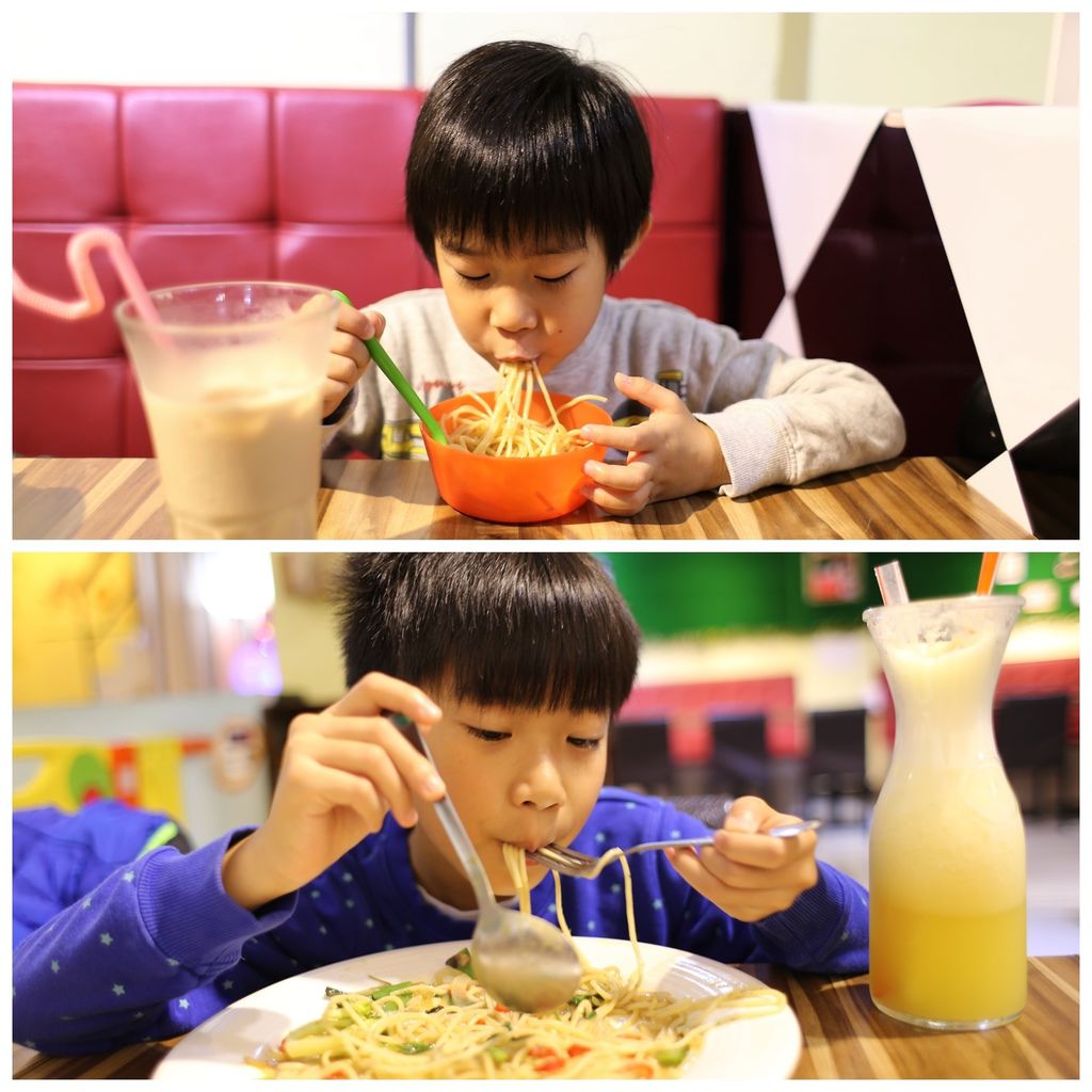 雖然有點辣度,但因為太好吃,兩兄弟完全忘記辣辣的感覺,用神速把整盤義大利麵吃光光