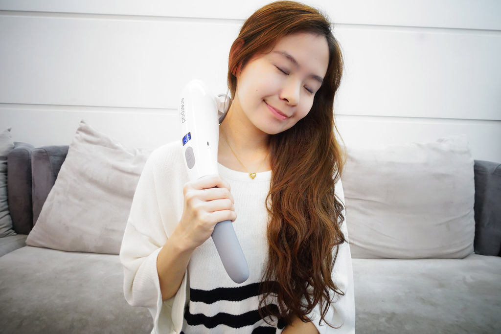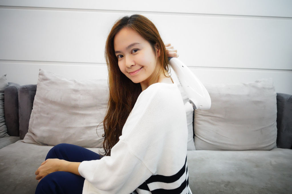 所以你看我按摩肩膀、按摩頭部,都不需要擔心會拉扯到頭髮,對於長髮女生也非常方便使用喔