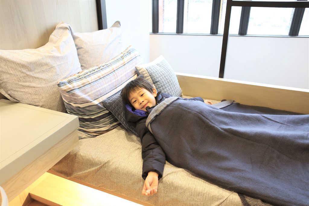 美好的環境,讓孩子不自覺的就跑去床上躺著了~