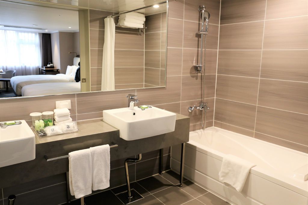 還有浴缸也是我很中意的,累了一整天可以泡澡,不過有個缺點就是沒有乾溼分離的淋浴間,泡澡區和洗澡區是同一個,使用窗簾當成乾濕分離