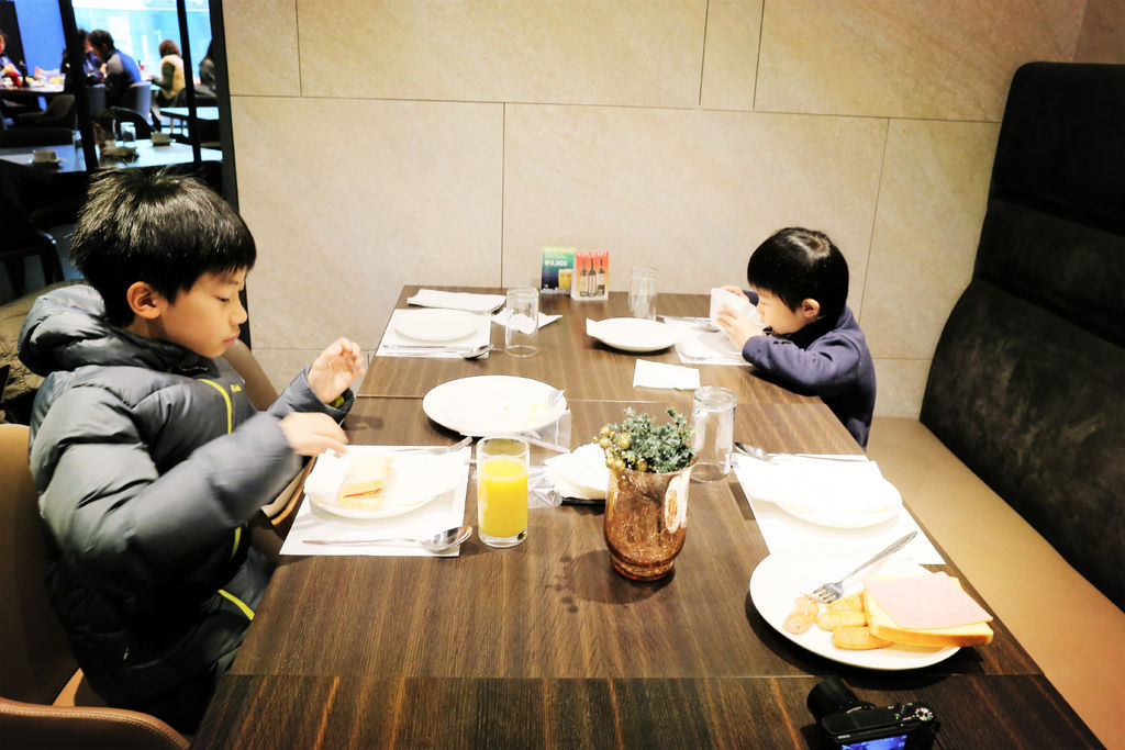 早上享用G2飯店早餐(需另外購買),雖然氣氛滿分,但覺得食材不夠豐富,有點簡略,不過孩子吃得很開心就是