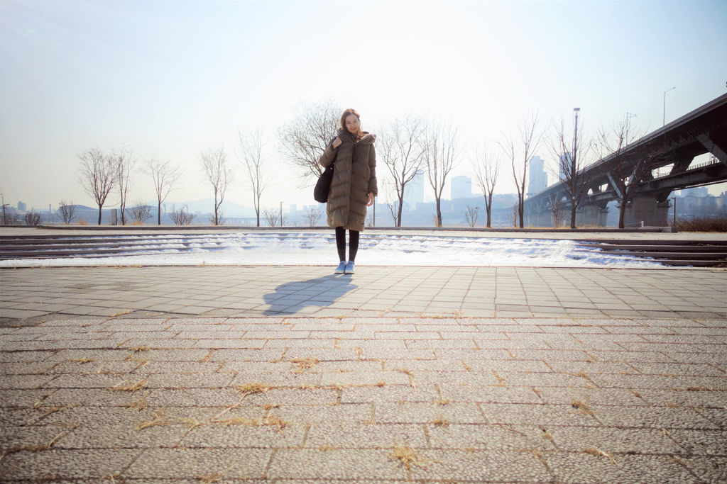 我還特別捨去帽子、圍巾和手套,腳踩球鞋,體會一下韓國人不怕冷的fu~~