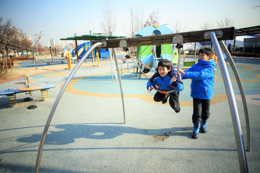 纛島漢江公園也有遊樂場,又讓孩子捨不得走了