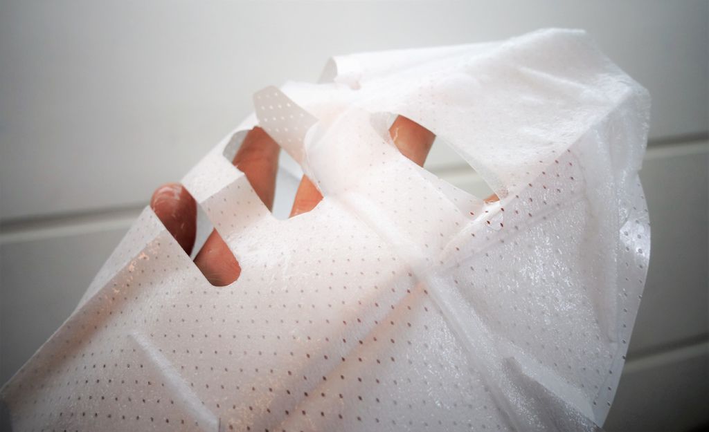 面膜布也是大有來頭,引進日本專利製造的綠色天然面膜布,因此特別細緻、服貼