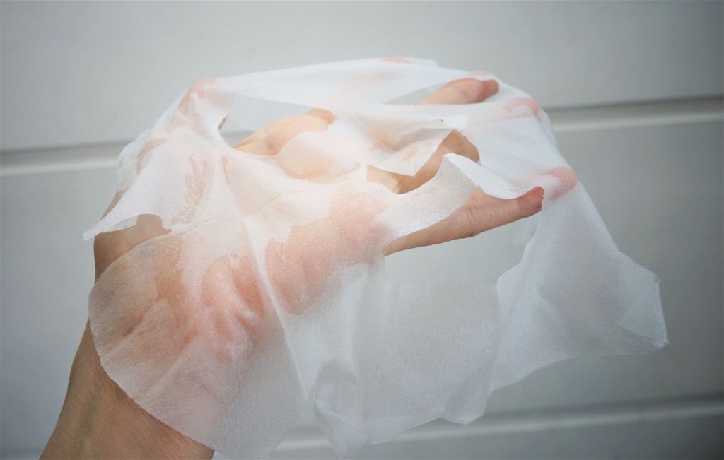 日本的天然面膜布的確特別服貼又舒服,你看~非常薄,能夠讓面膜中的精華更完整的運送到肌膚底層