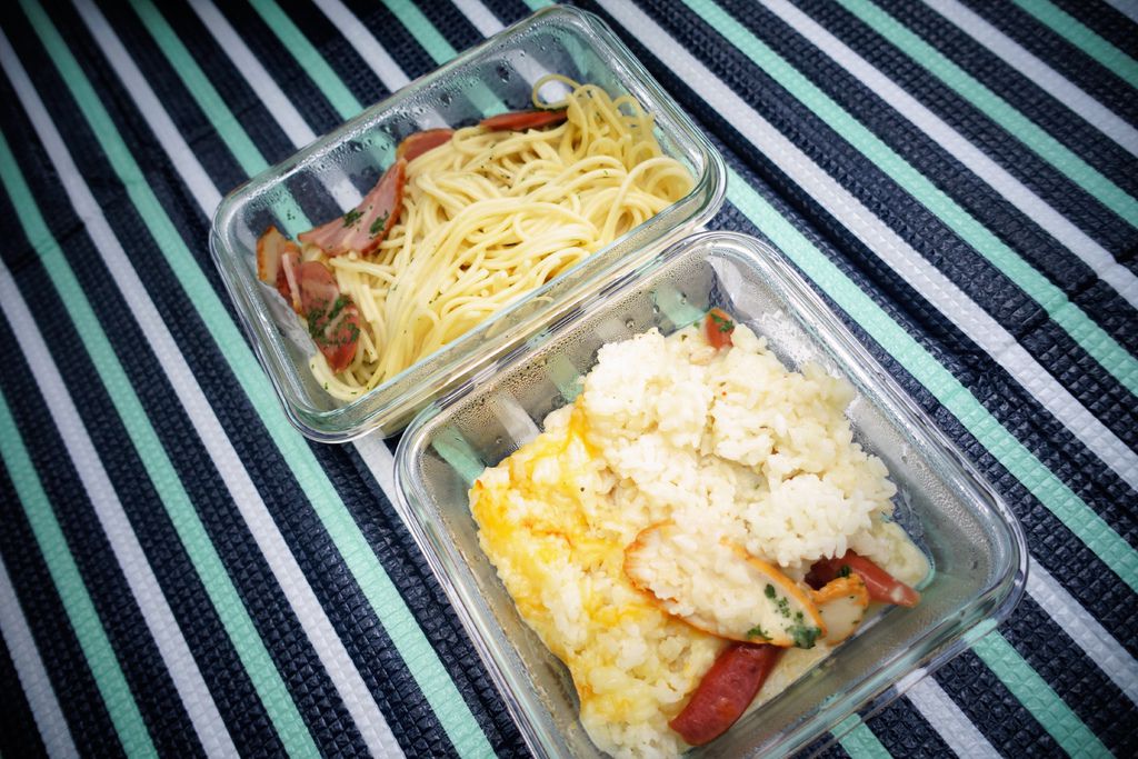 每次野餐,義式料理就是我們必備的美食佳餚囉,先用玻璃保鮮盒放入烤箱調理餐點後