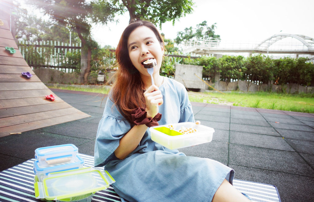 拿出來不需要再準備其他容器,就可以直接蓋上蓋子帶著出門囉,你看,直接端到野餐墊上,是不是非常方便又衛生