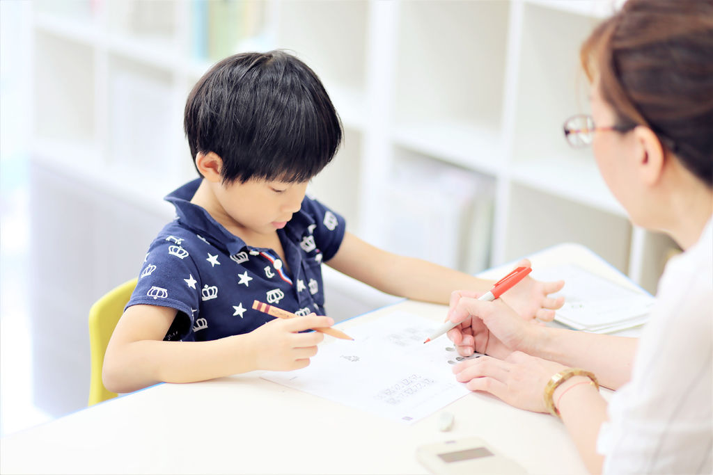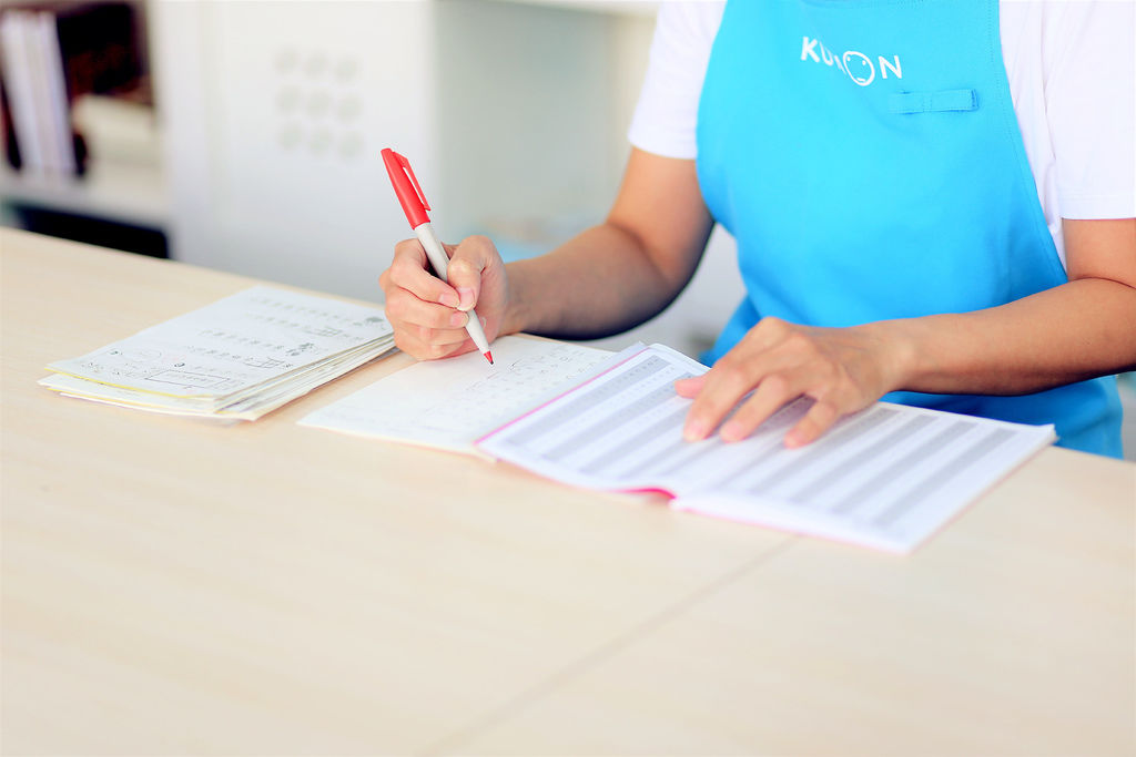 KUMON由老師批改作業與課堂教材,比較特別的是,第一次有錯誤,老師會請孩子再去思考一次,不會直接告訴孩子答案