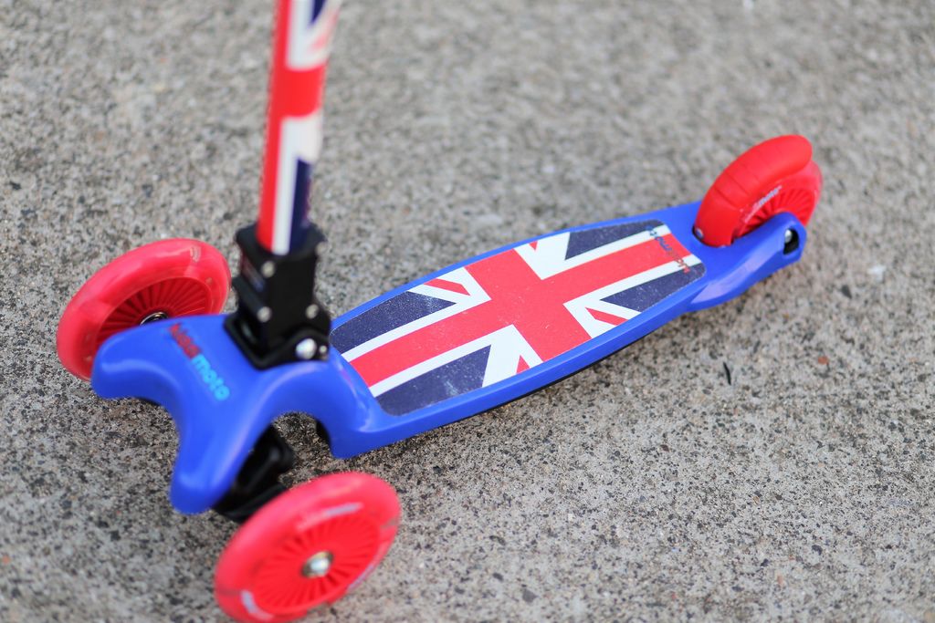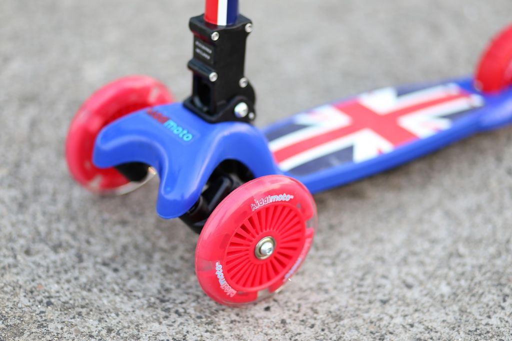 【英國 kiddimoto】滑板車也是我很推薦的,我們家之前已經有兩台滑板車了,跟剛剛的平衡車一樣,滑板車在我家是365天營運,全年無休的喔!