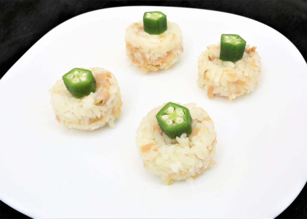 像最近是秋葵生產的季節,我就會製作秋葵鮪魚小飯糰,孩子們很賞臉,每次都一口氣吃好幾個