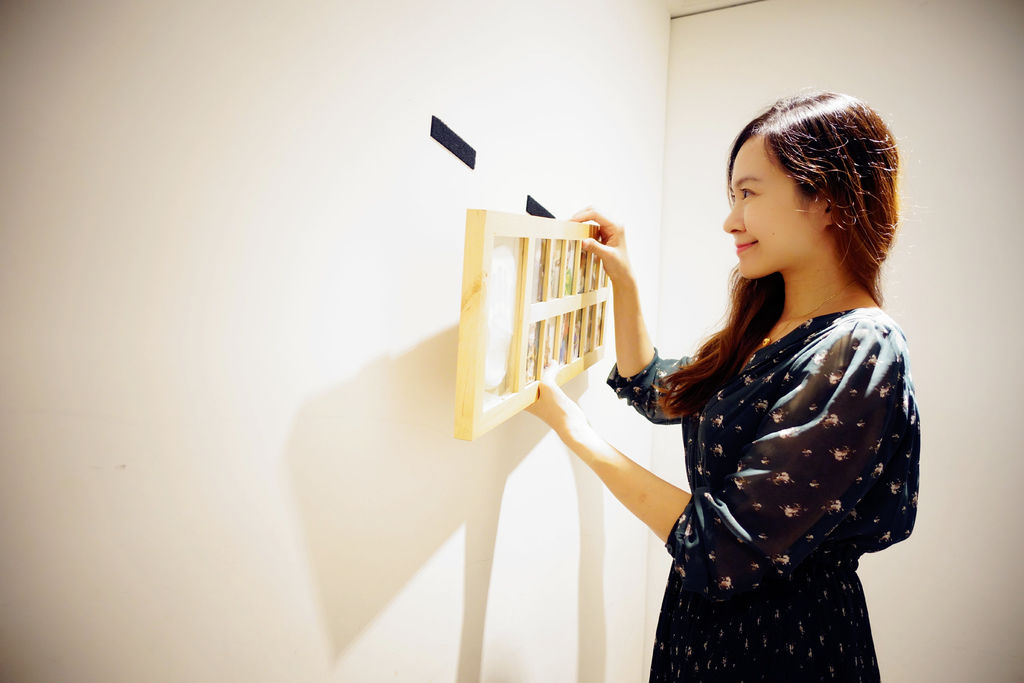 但因相框有點重量,市面上的膠條無法完全固定,所以木製相框只能放在櫥櫃裡生灰塵