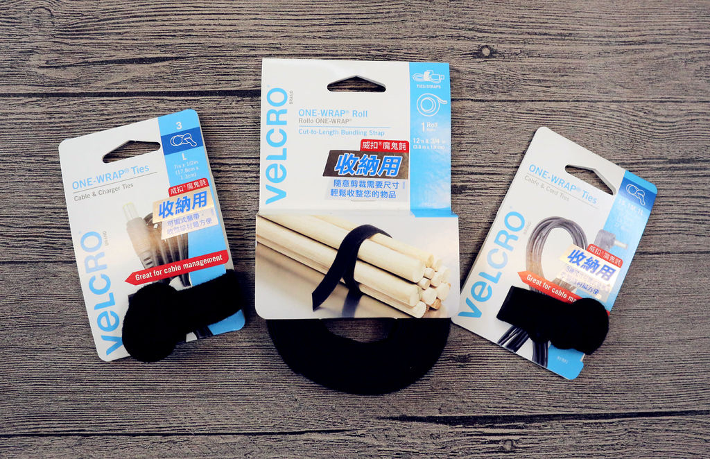 收納用的魔鬼氈有不同大小尺寸,可以輕鬆收納電線和物品,也有可以自由剪裁需要長度的整捲束帶