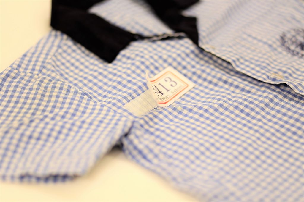 用魔鬼氈貼上,每次洗衣服前拿下來,就可以一整學期保持名牌的潔白乾淨囉!