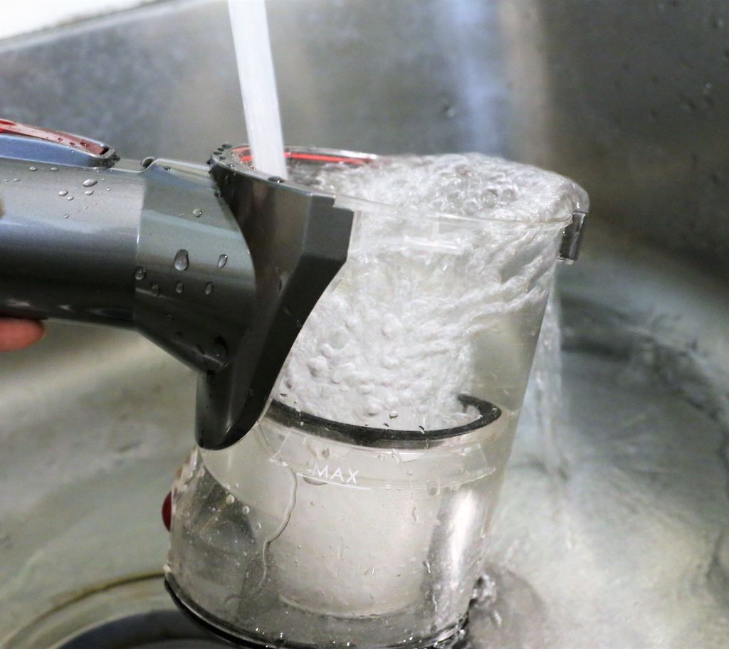 集塵桶濾網不藏汙納垢,拆卸後就可以把毛髮灰塵倒乾淨,還可以將集塵盒直接用水清洗,乾淨度再度加分!