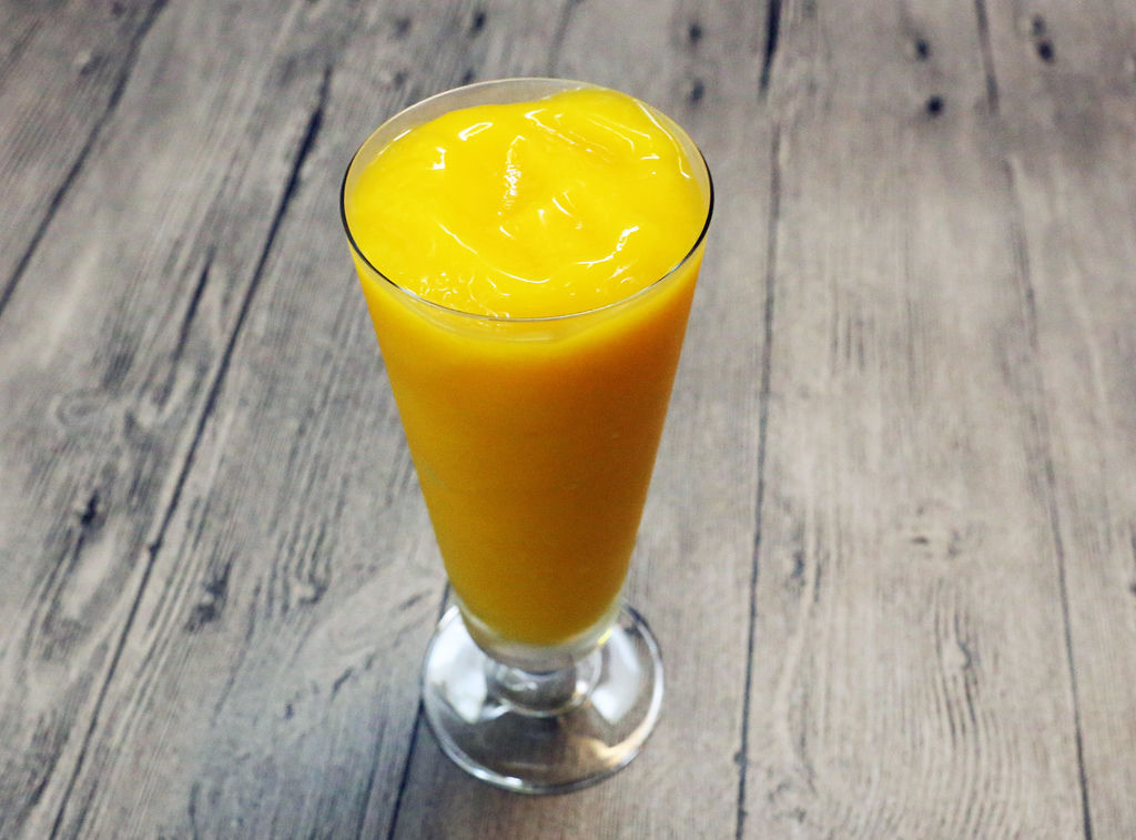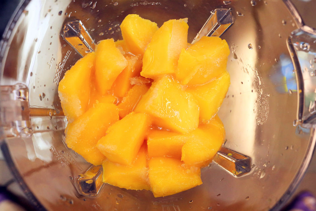 只要把芒果切塊,加入冰塊,稍微加入一點水就好,這樣就可以製作囉!
