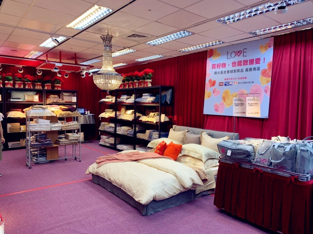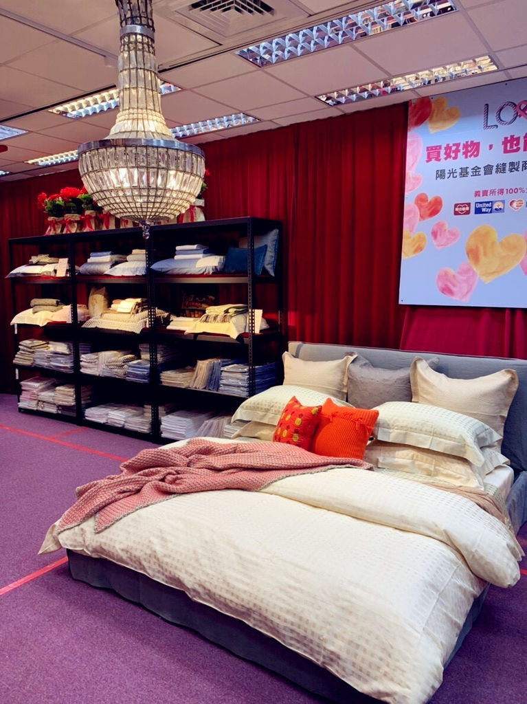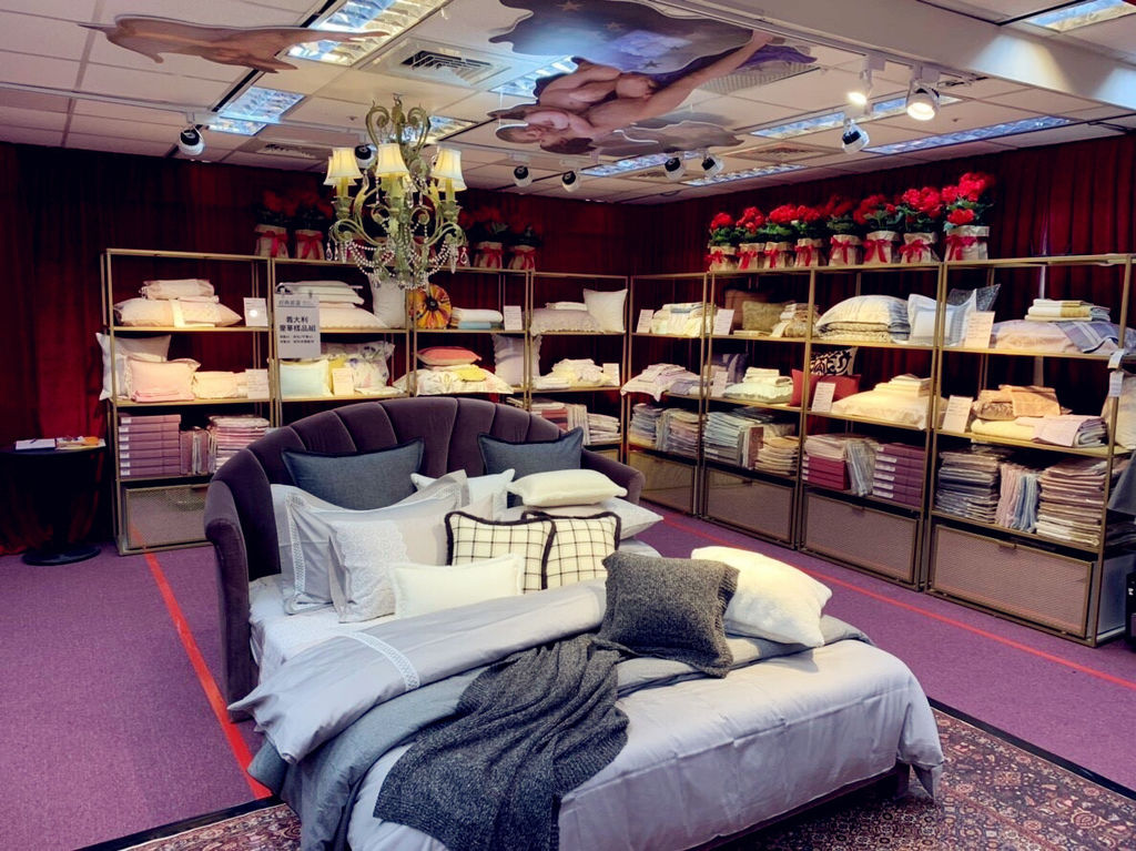 現場除了寢飾之外,也有被枕丶家具丶家居服鞋丶靠墊披毯、杯盤傢飾~