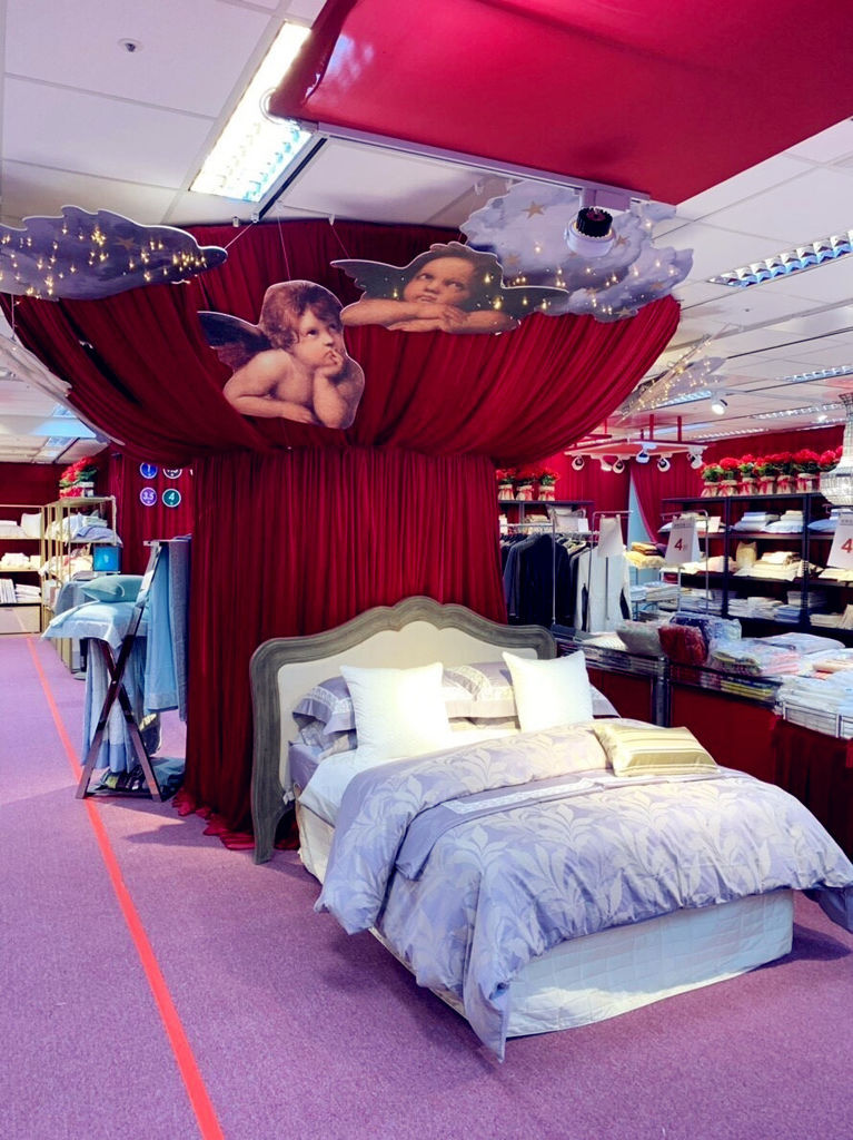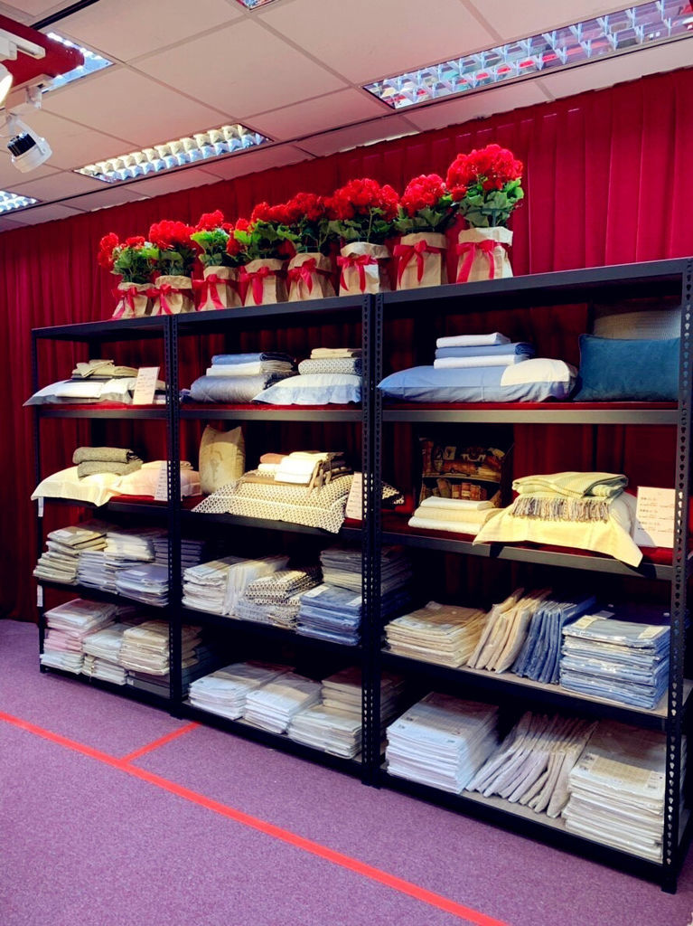 如劇院感的現場陳列,寢飾丶被枕丶家具丶家居服鞋丶靠墊披毯、杯盤傢飾,品項好豐富~