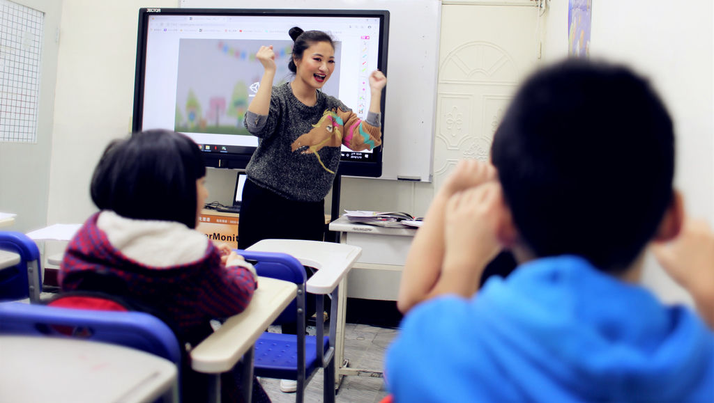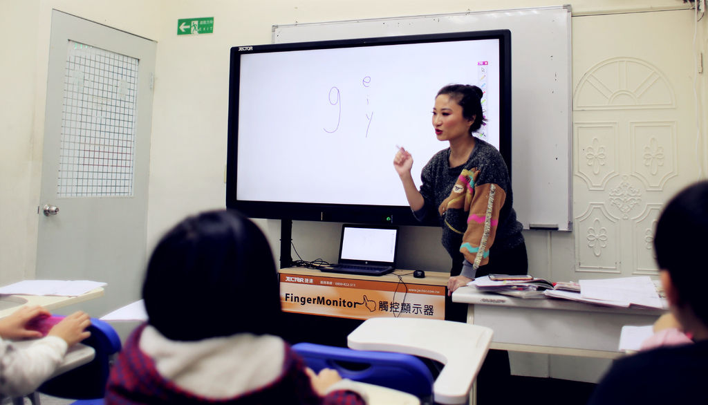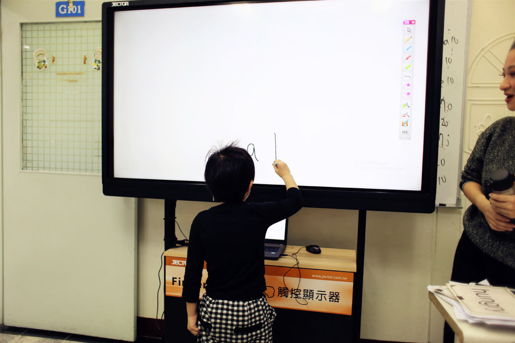 目前台灣使用電子白板教學的兒童英文班並不多,格蘭英語的電子白板可以說是引領潮流的教學法