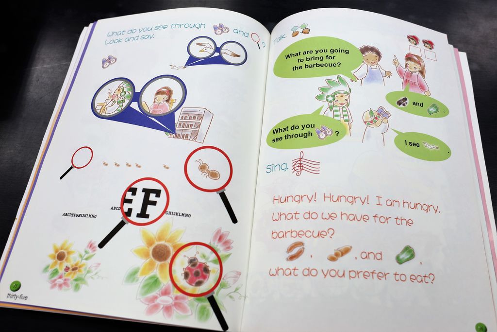 除了單字、句型、發音的教學,針對初級班還有一本專門是歌曲的書籍