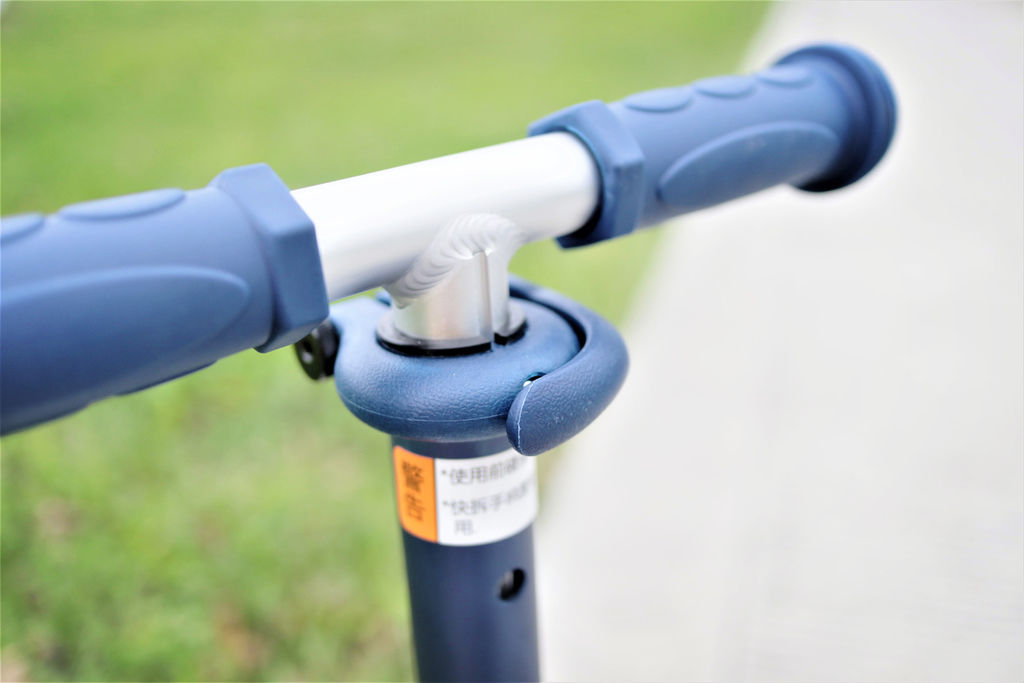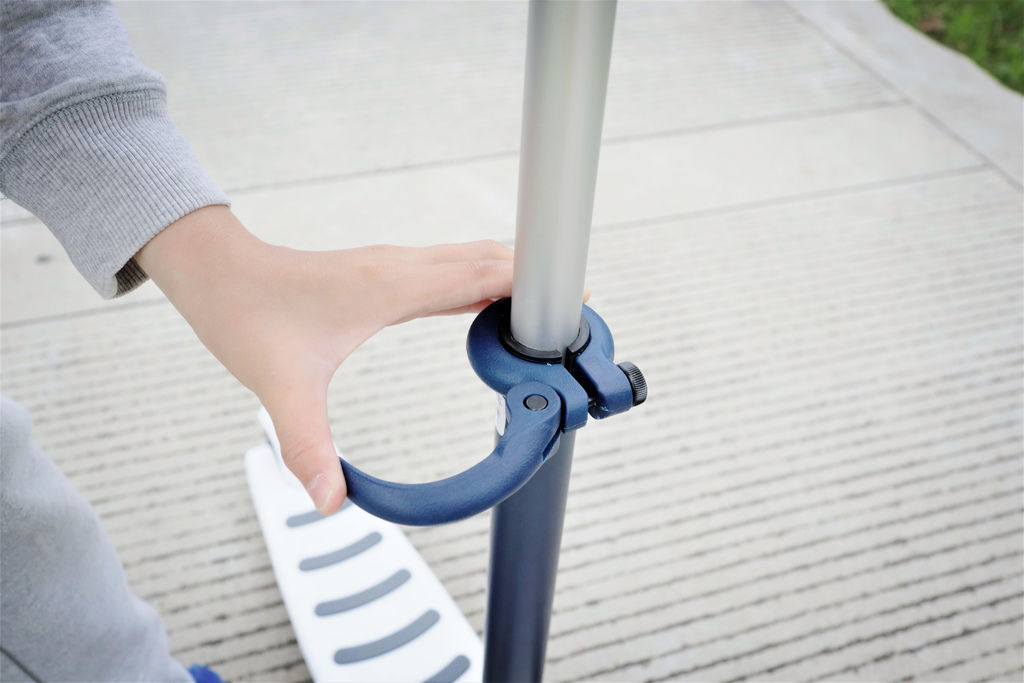 車桿固定把手的圓弧設計,調整高度超容易,有三段高度可以調整