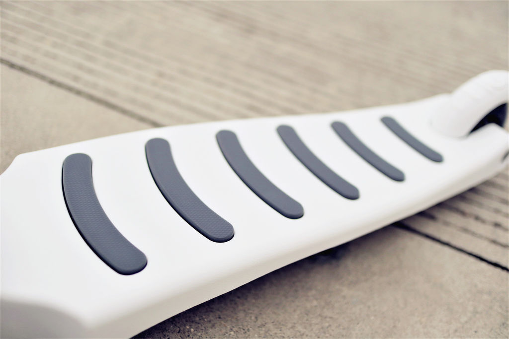 也喜歡這台滑板車流線型的「人體工學設計」,黃金三點穩定結構,有超跑的大將之風