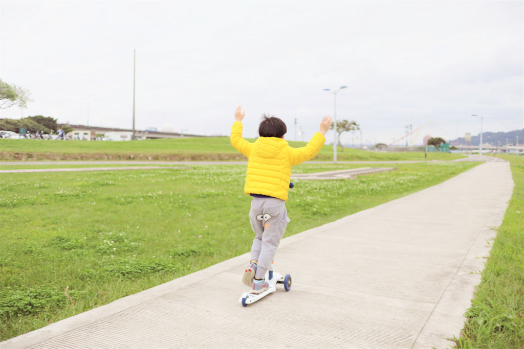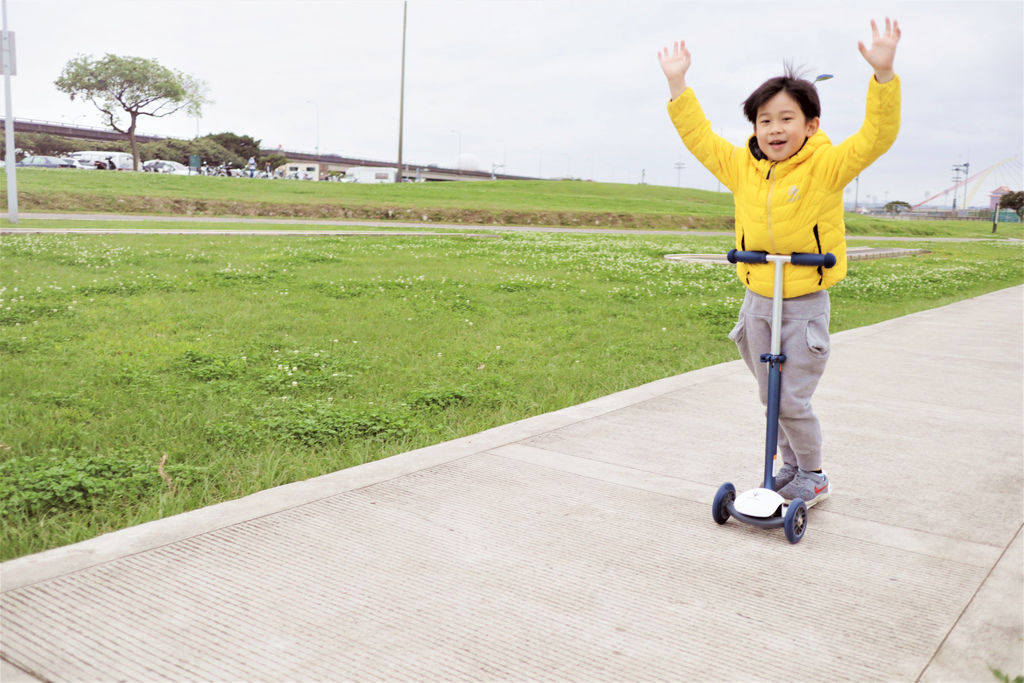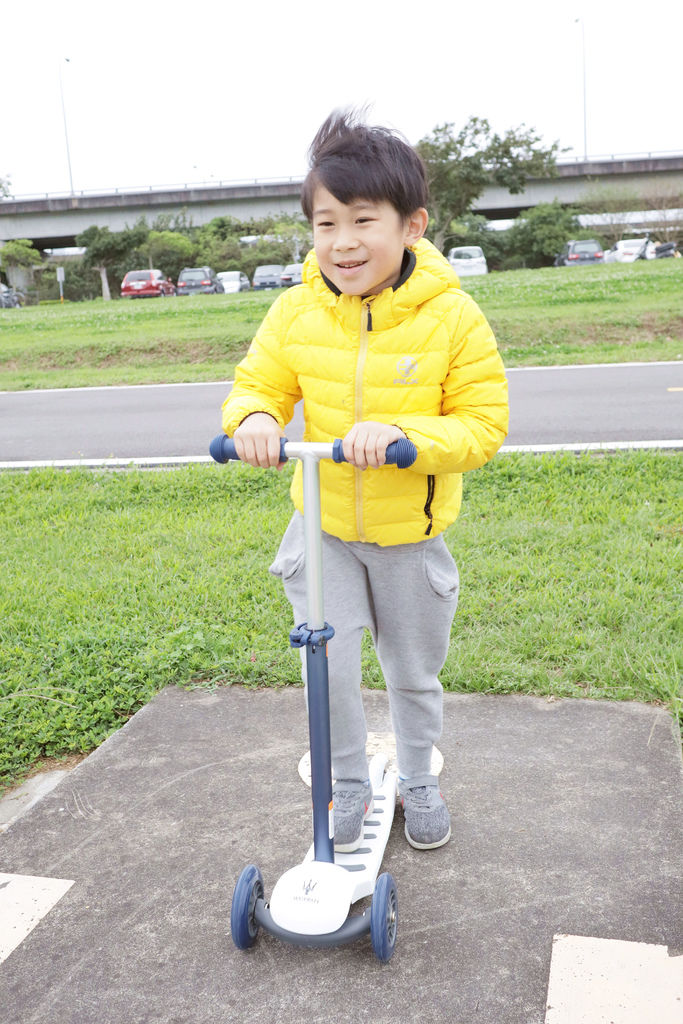 滑板車從小開始騎,可以提升身體協調性、訓練平衡感和應變能力、增加腿部肌力,鍛鍊體能,好處非常多,而且還可以騎好幾年