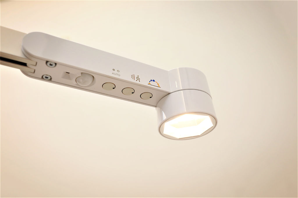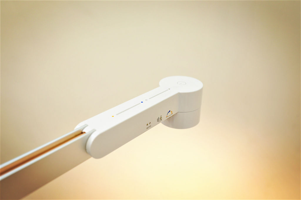 實體控制按鈕都在燈頭的位置,有Auto環境光偵測、動作感應偵測和日光追蹤按鈕