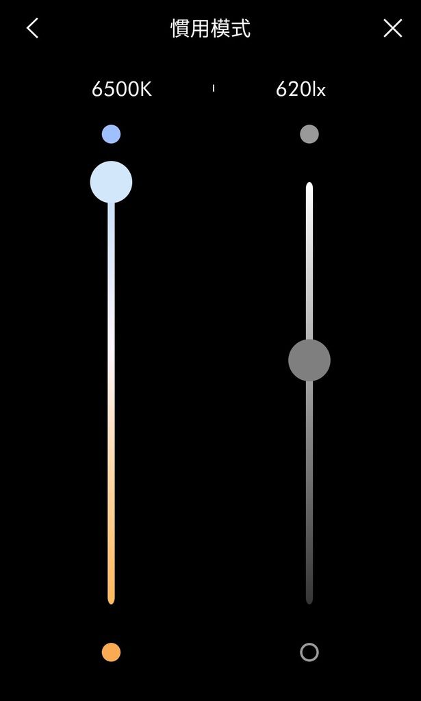 也可以採用手動微調,是以「精準滑動觸摸式」來進行色溫與亮度的調整,沒有限制燈光的段數,隨意調整至喜歡的亮度,非常人性化