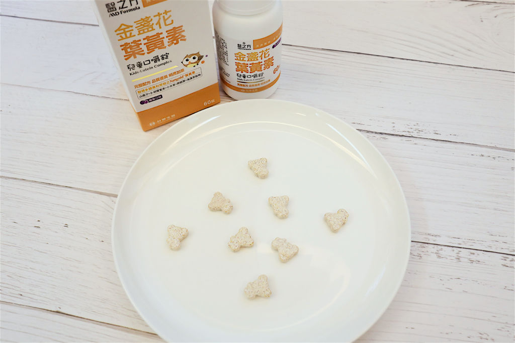 另外醫學期刊研究顯示,每日補充6mg葉黃素可達到預防保養,所以我就幫孩子準備了【兒童金盞花葉黃素口嚼錠】