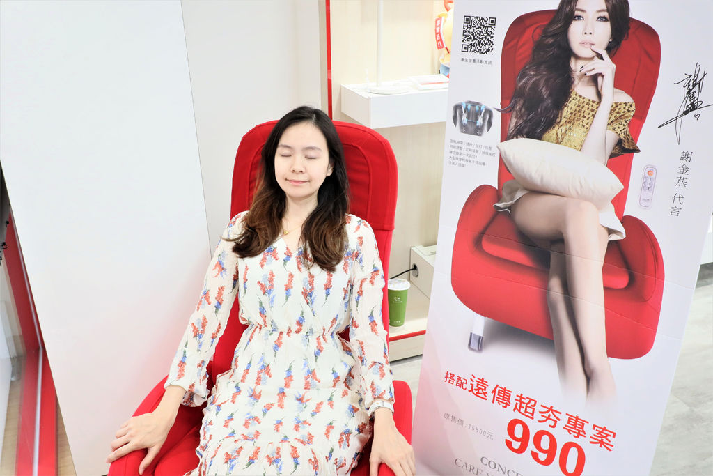 這次我到門市,親切的服務人員熱情地要我試坐康生按摩小沙發,不誇張,坐下去就捨不得起來啦!