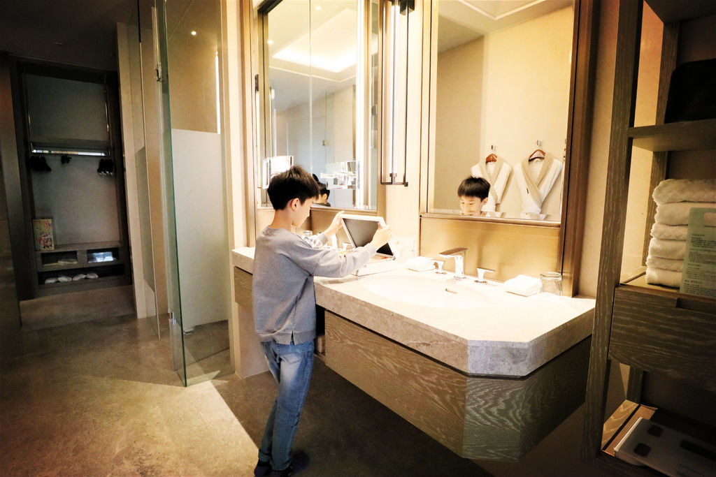 房間比一般台灣飯店的家庭房多了整整兩倍之大,一邊是兩張雙人床與辦公桌沙發區,一邊是大型衣帽室與衛浴空間