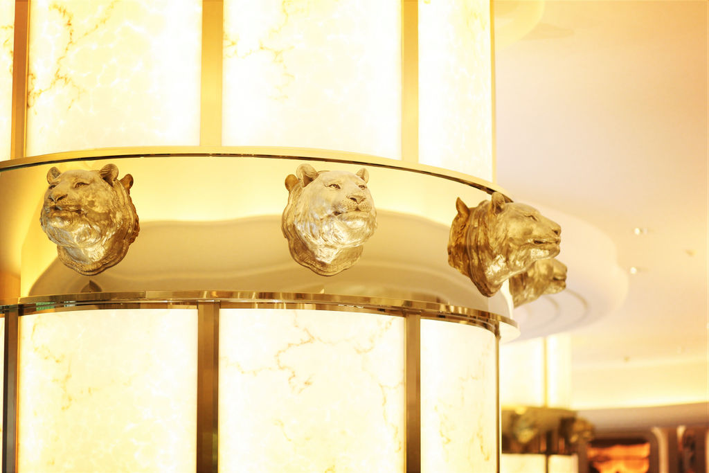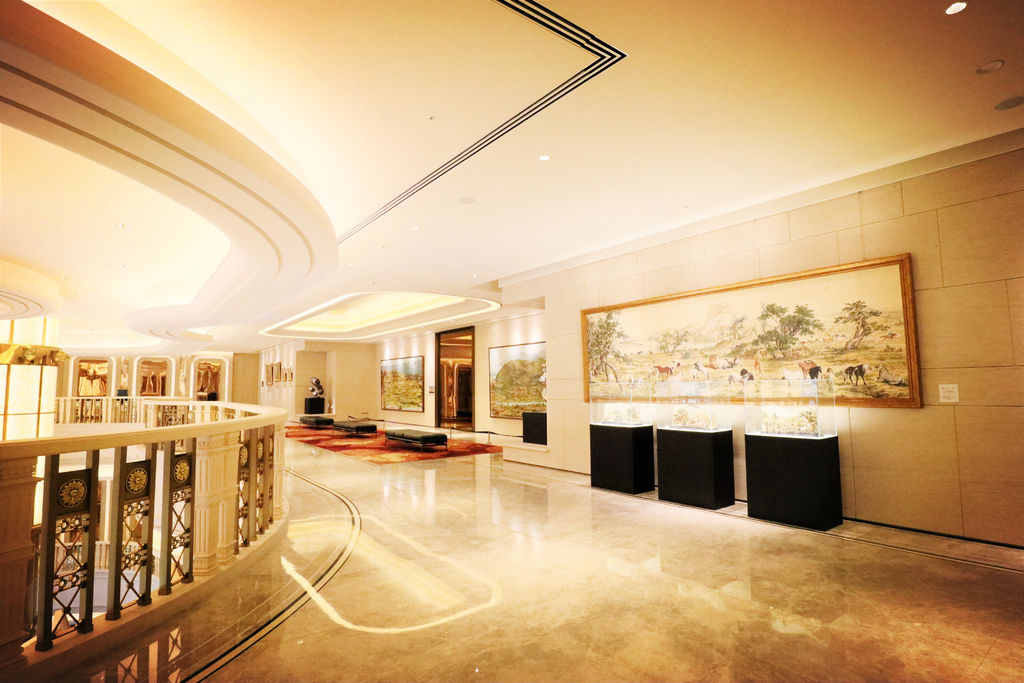 無論是極為珍貴的三座郎世寧百駿圖瓷雕藝術、甚至是聳立在梁柱上的虎頭,都能讓人感受到氣派非凡