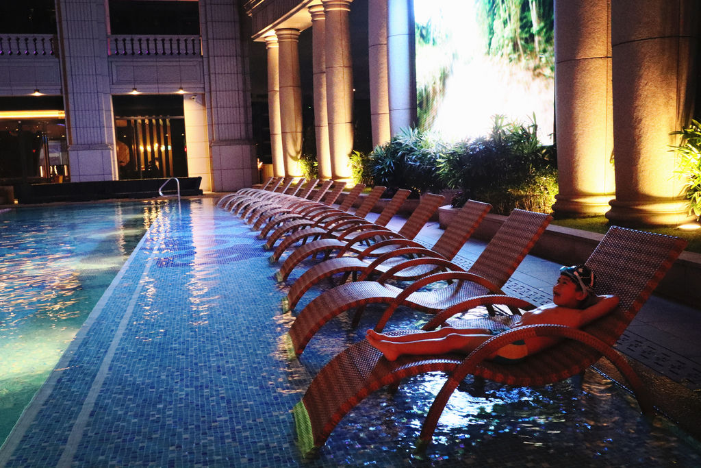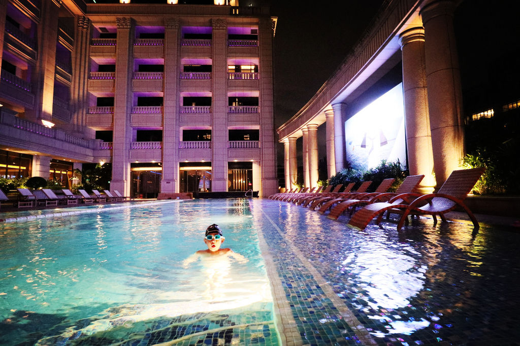 光是戶外游泳池,我們就去了兩次,晚上一次、白天一次,各有不同的風情