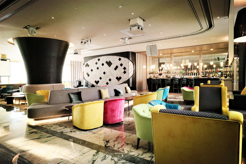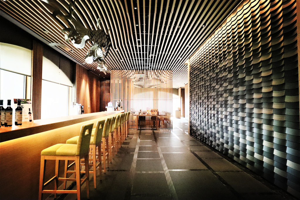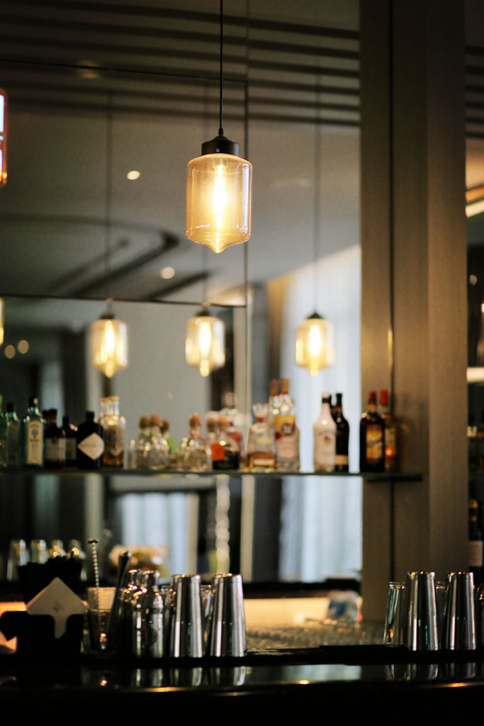 一邊品嚐美酒,一邊看著落地窗外的戶外泳池,是夜晚讓人感到最輕鬆恣意的lounge bar
