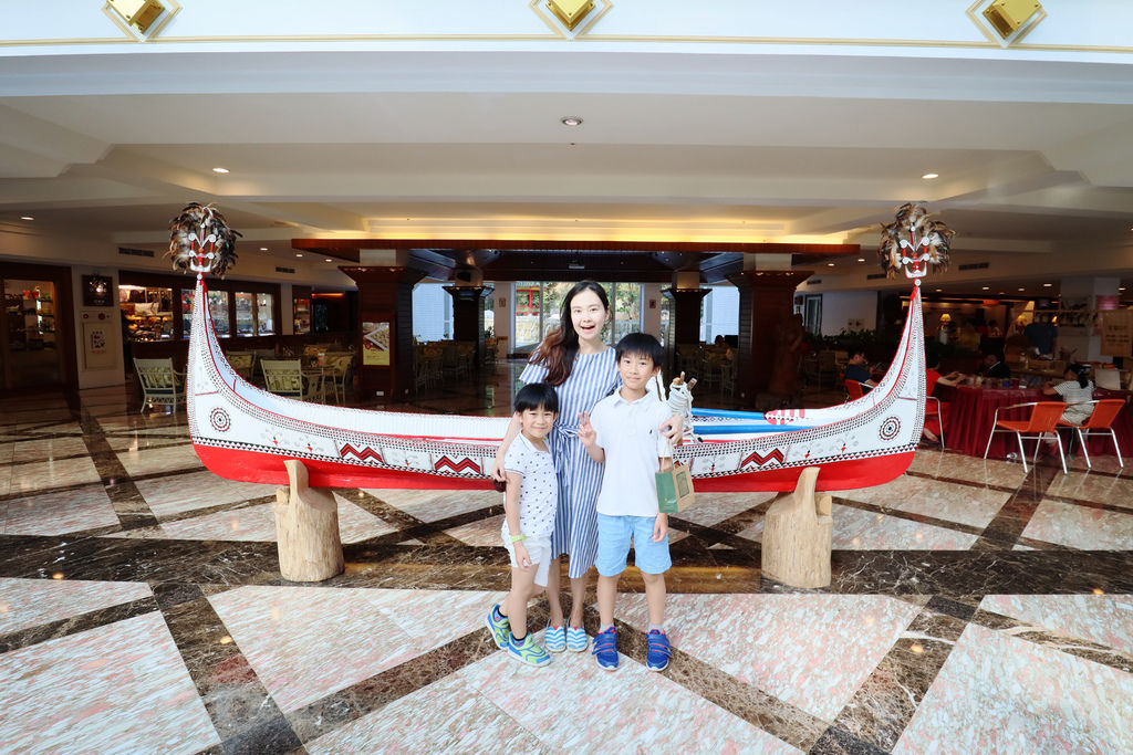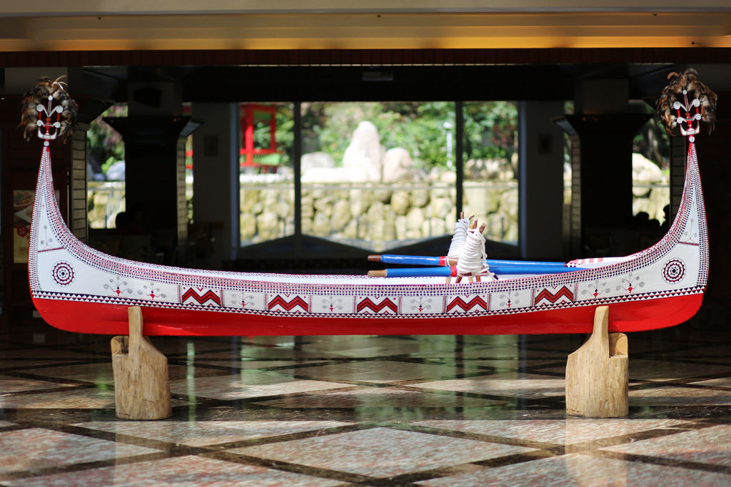 更特別的是大廳內擺放著一艘「蘭嶼拼板舟」更讓人感受到台東度假的濃濃風情