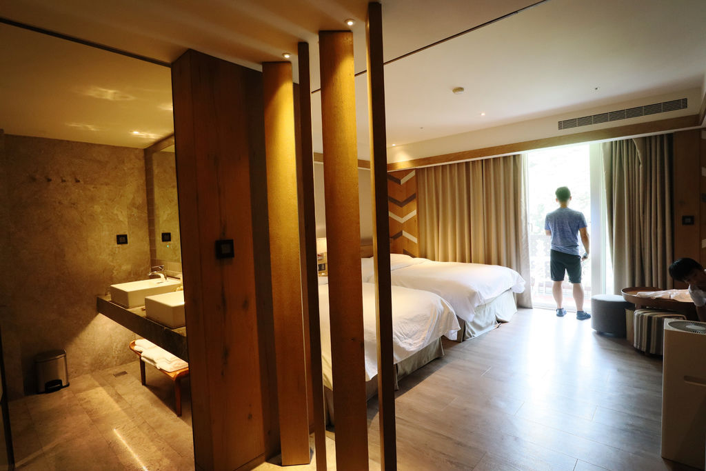 一進入嶄新的家庭客房也是讓我感到驚豔的地方,全新裝潢的10坪空間比一般台灣飯店的家庭房更大了不少,一邊是寢室,一邊是衛浴空間