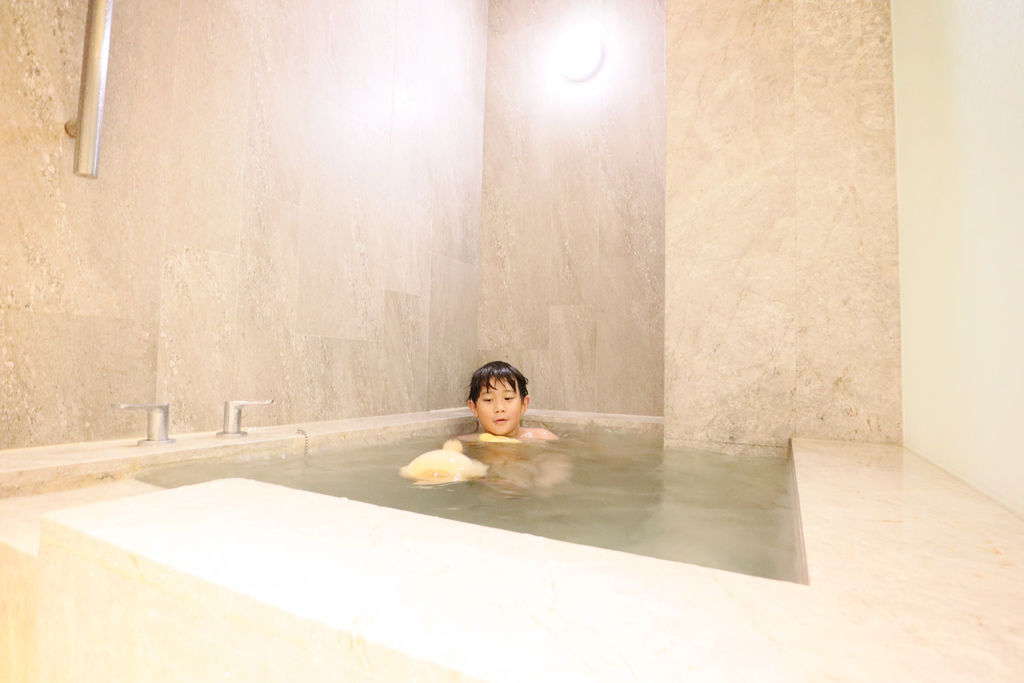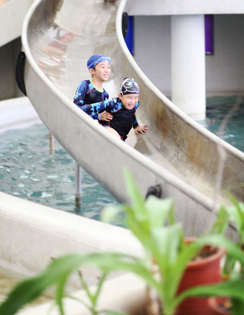 在溫泉池裡溜滑梯、泡湯、玩耍,真得更能感受到讓血液循環的感覺!