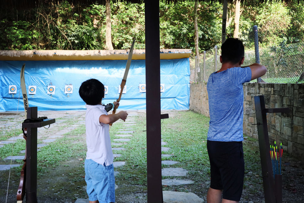 飯店安排教練專人指導射箭活動,140公分以上可以參與,經過這次的射箭初體驗我才發現原來弓箭那麼中、弦那麼緊,真是之前沒有預料的