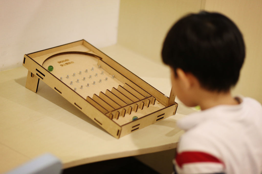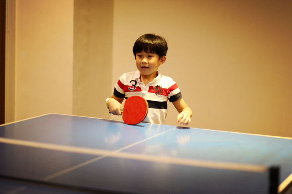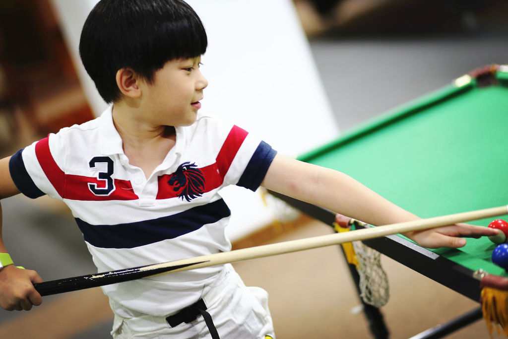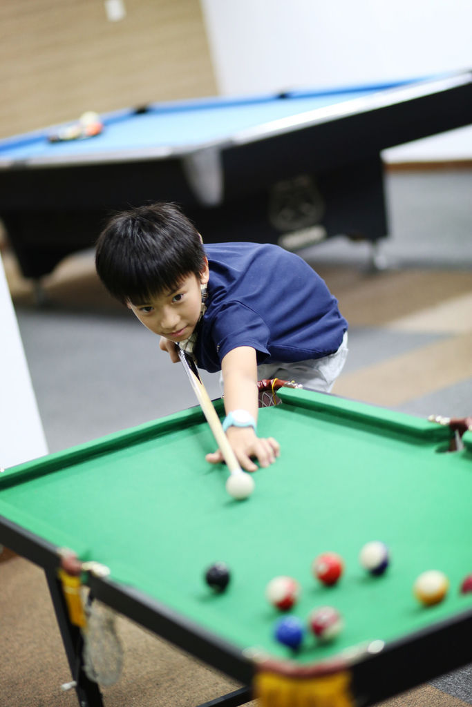 有趣的是還有一台兒童撞球檯,鏞鏞甫甫玩得好盡興啊