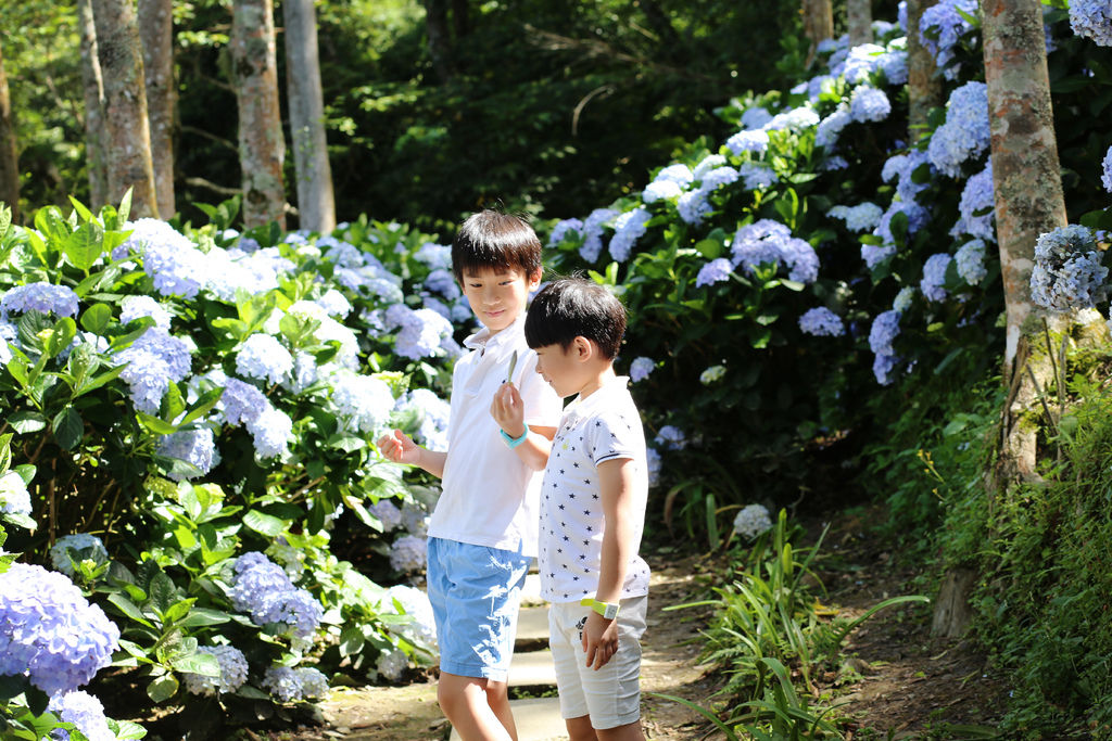 第一次看到繡球花的我們,真的有驚訝到,滿山遍野的繡球花就環繞在我們四周