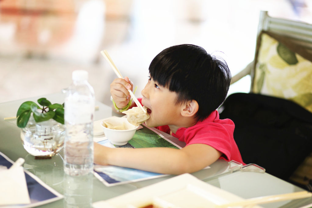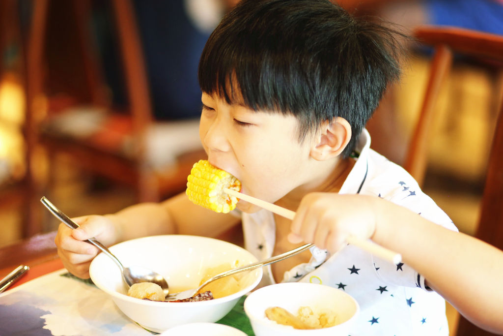 孩子也吃得很開心,即使睡眼惺忪,還不忘大口品嘗美食
