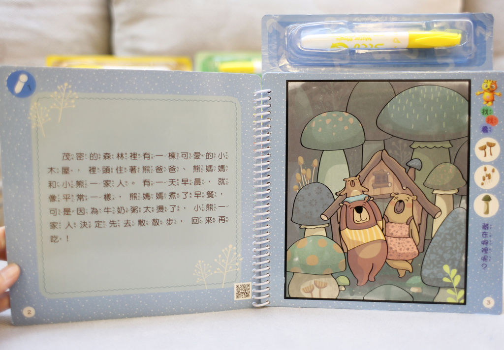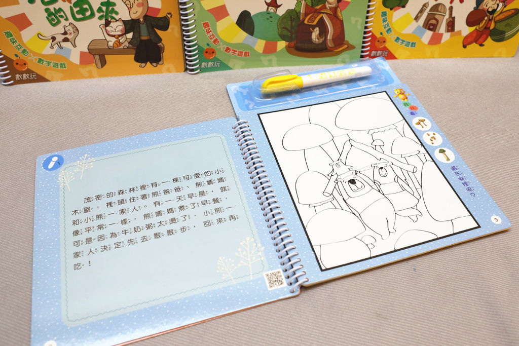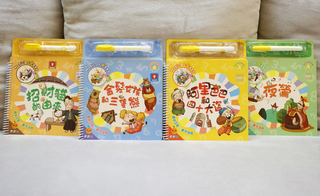 這四本書不但有故事和益智遊戲,還能成為水畫冊,並當成隨身聽聆聽故事,一本書有那麼多功能,真的非常值得珍藏!